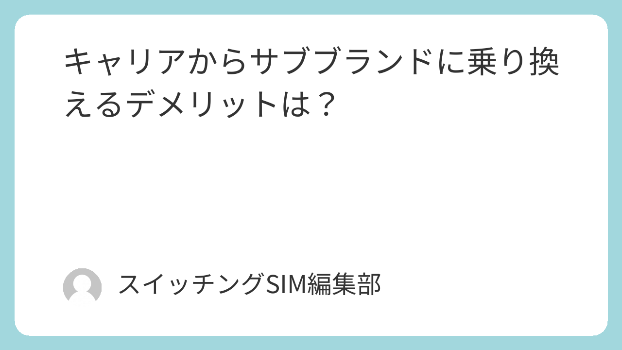 まずはキャリアからサブブランドへ乗り換えるべきか、デメリットまで含めて判断できる結論を先にお伝えします。