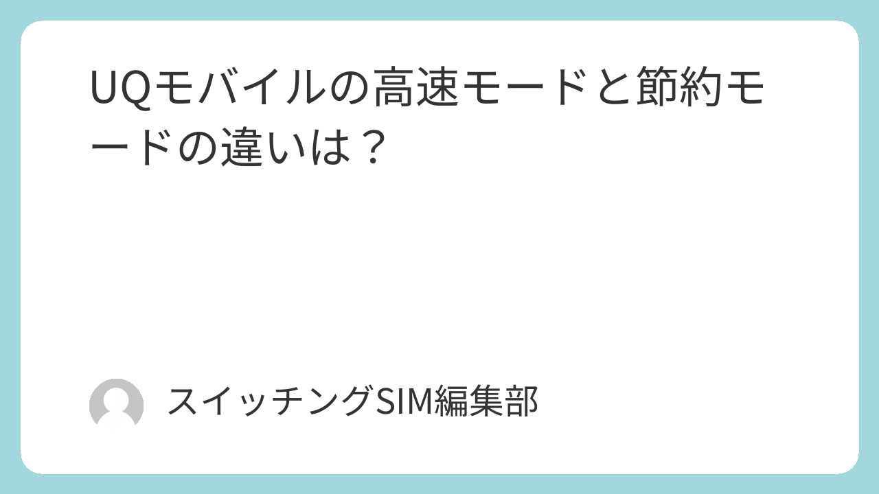 この記事ではUQモバイルの高速モードと節約モードの違いを、初心者にもわかりやすく解説します。