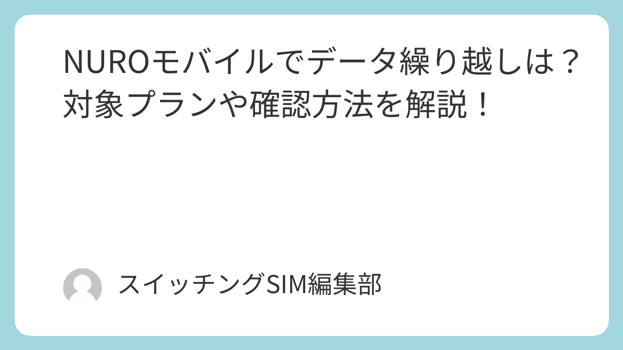 あわせてデータ量の確認方法や、NUROモバイルの繰り越しの仕組みについてもお伝えできればと思います。