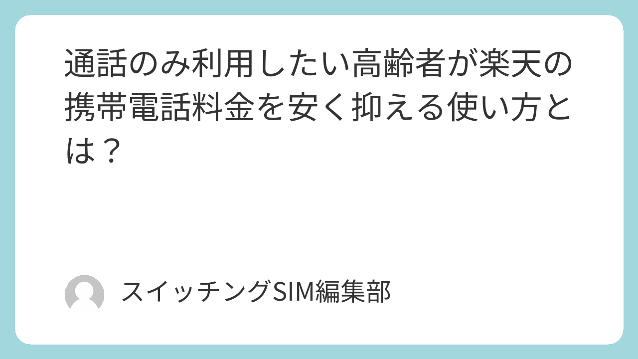 通話のみで携帯電話を使いたい高齢者にとって、楽天の携帯電話料金は工夫次第で大きく節約できます。